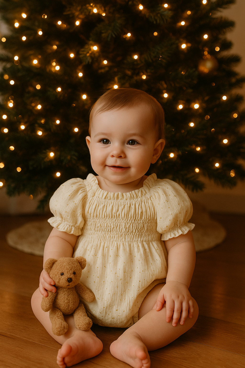 HI BYEBEBE~Cream/Gold Sparkle Romper